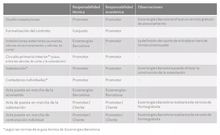 - Se han elaborado guías técnicas que recogen las recomendaciones y requerimientos para el diseño de las instalaciones de intercambio que permitirán la conexión de los edificios a la red. Puesta en marcha e inicio del servicio